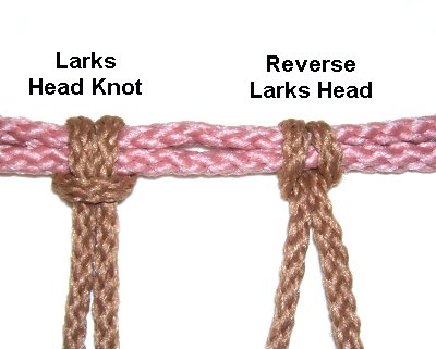 Ich hab für diesen Wandteppich nur zwei Knoten umgesetzt: den waagrechten Rippenknoten (Horizontal Double Half Hitch) und den versetzten Weberknoten (Double Square Knot). Der waagrechte Rippenknoten wird durch dieses Youtube-Video sehr gut erklärt.